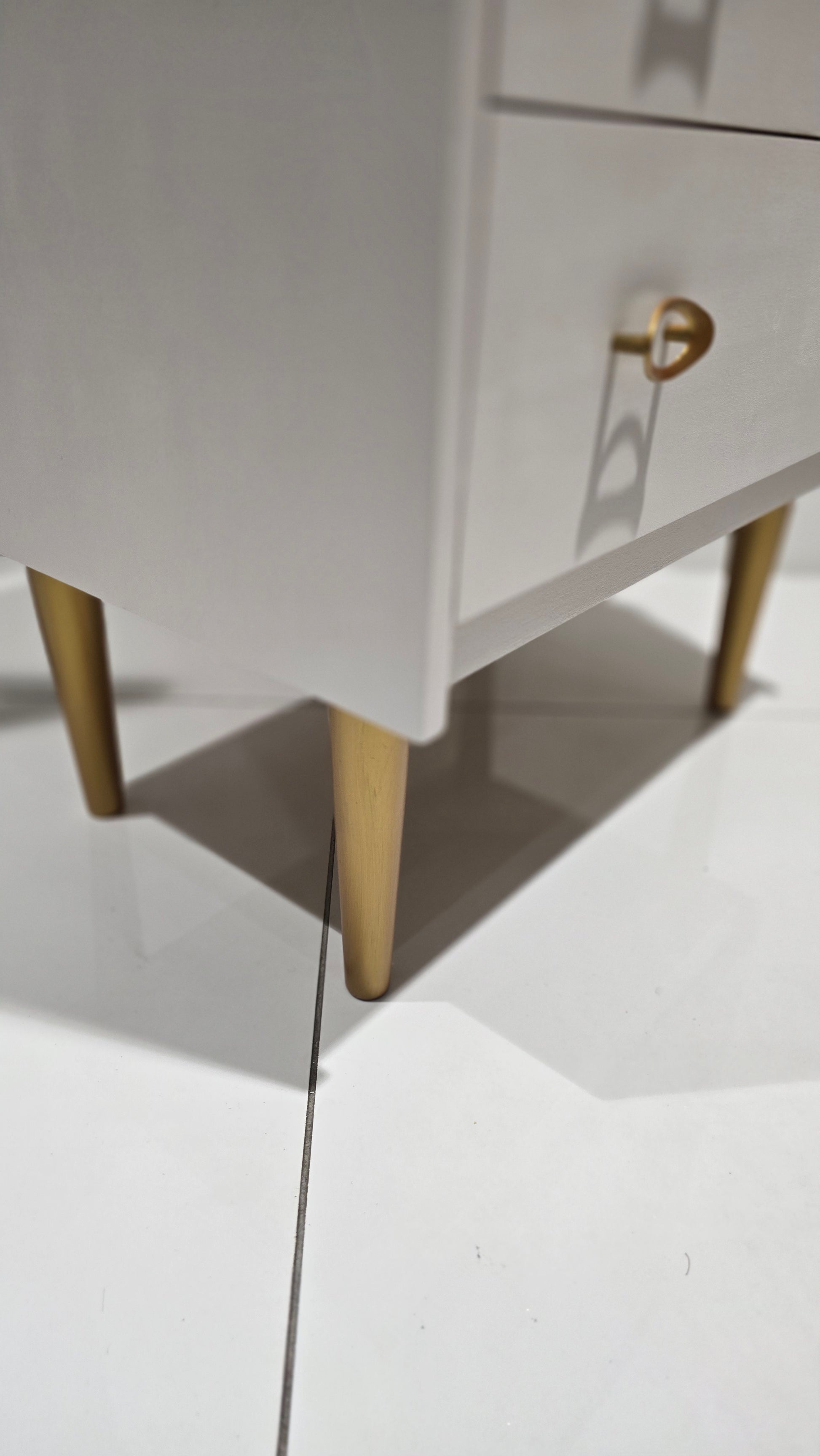 Painted in Rococo White with gold-painted legs