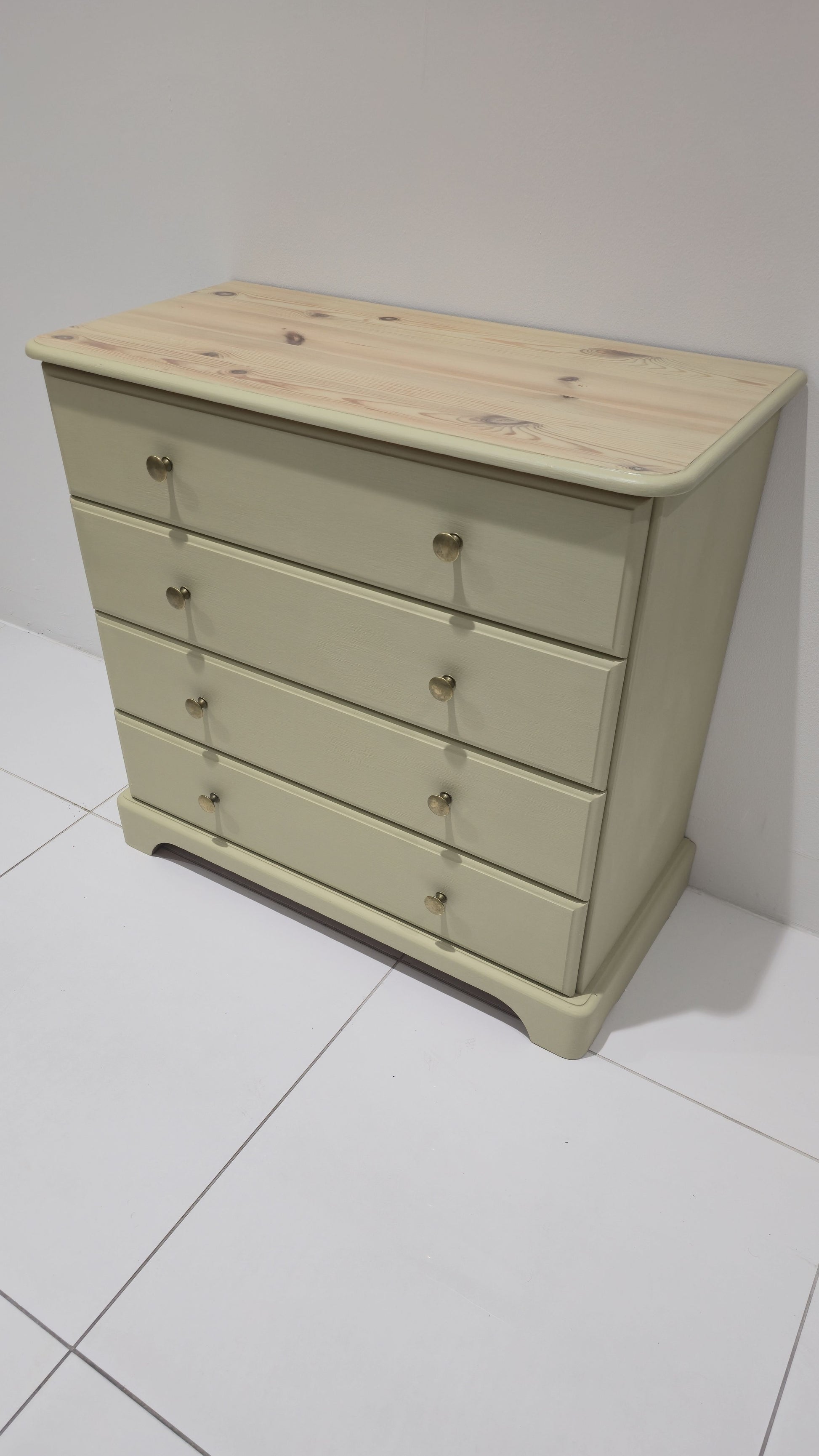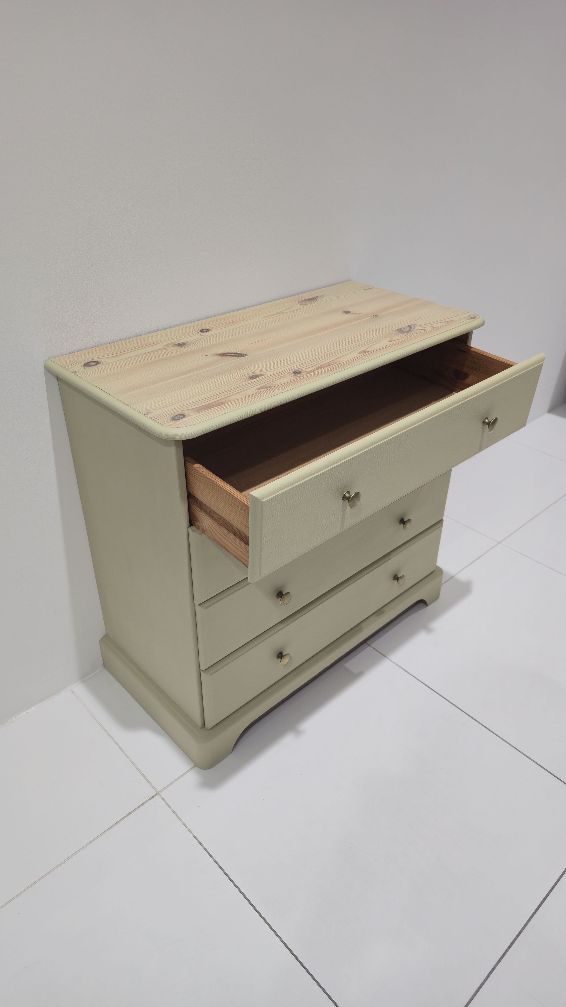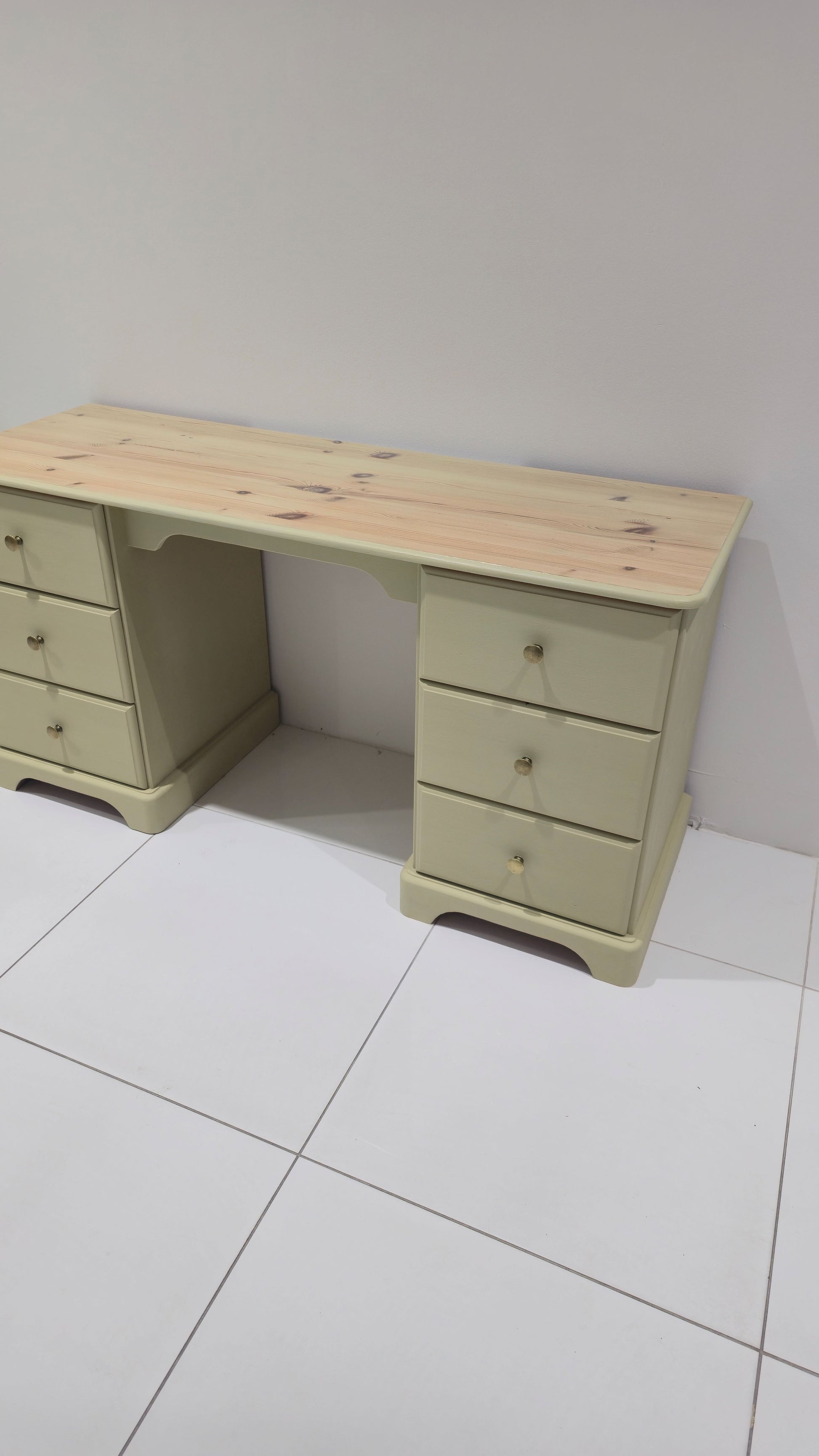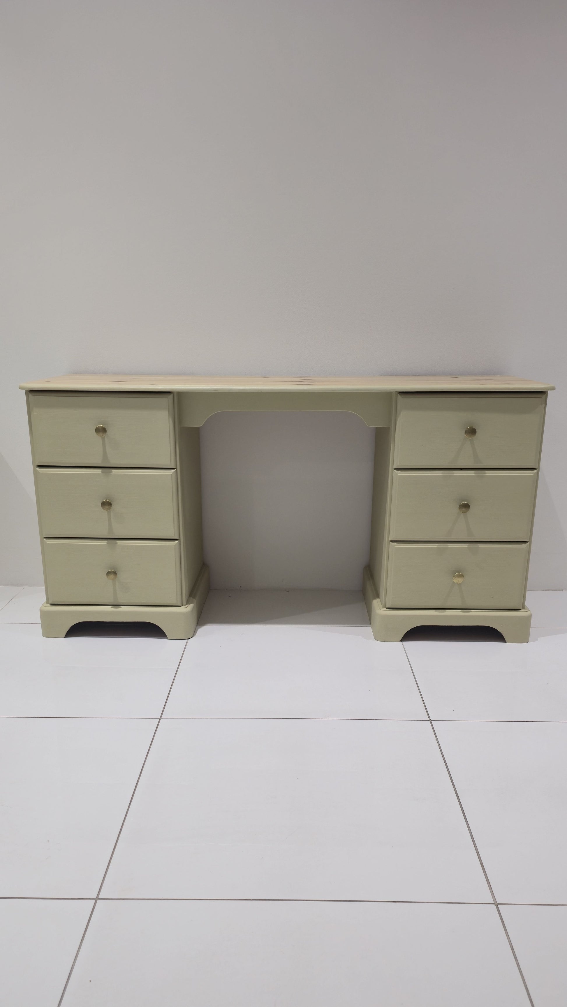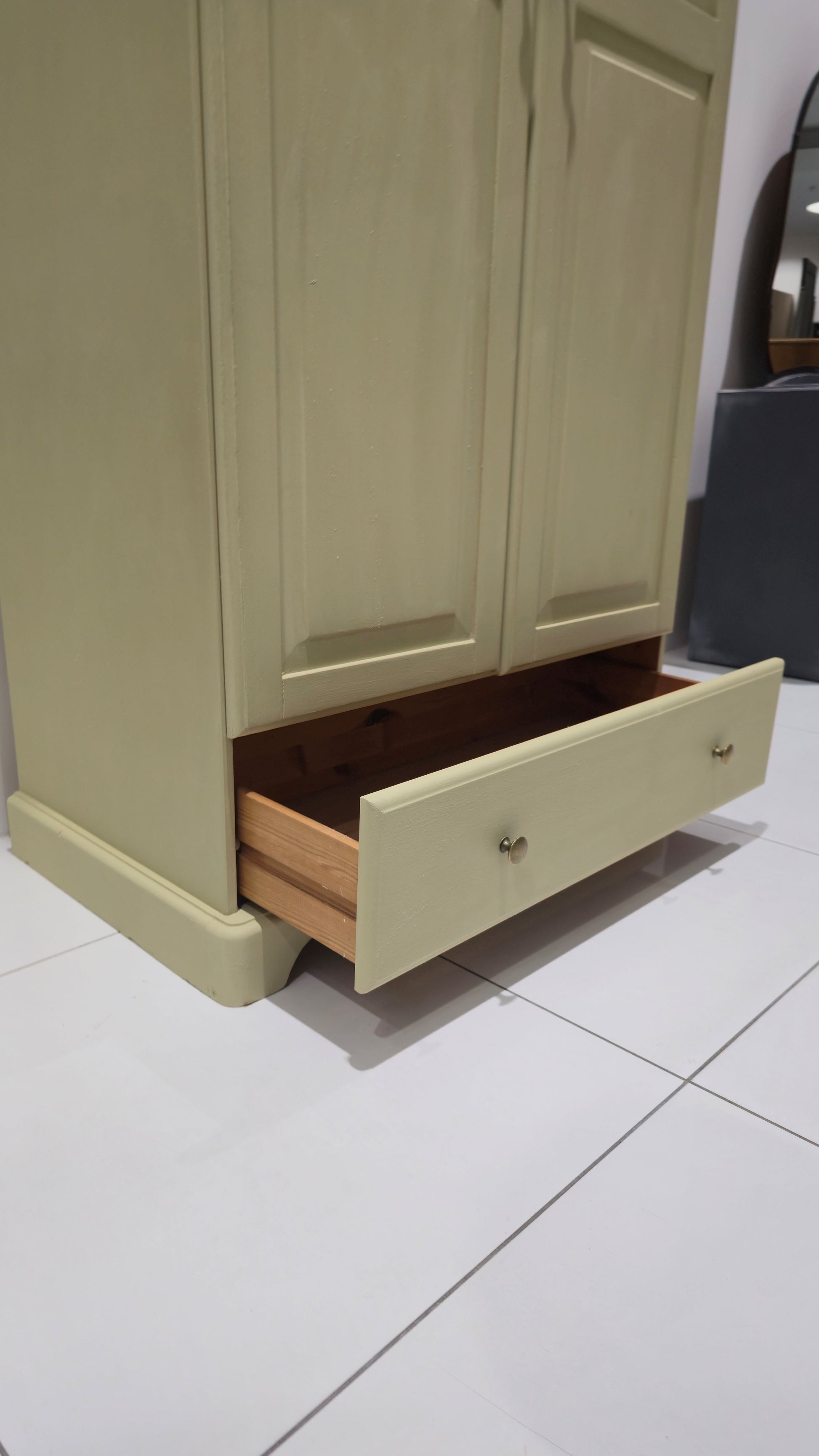 This beautifully refinished bedroom furniture set combines classic design with a soft, elegant modern finish. Painted in Annie Sloan Chalk Paint in “Versailles”, a refined, muted French green with subtle warmth, the trio brings a calming, sophisticated feel to any bedroom.