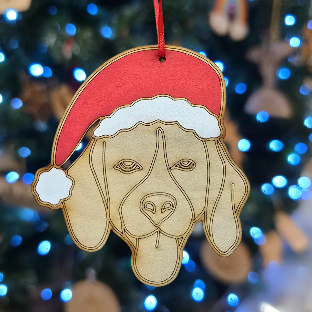 Bring the holiday spirit into your home with our adorable laser-cut Christmas decoration featuring a charming Beagle sporting a festive hat! This delightful piece is perfect for dog lovers and makes a wonderful addition to your holiday decor.